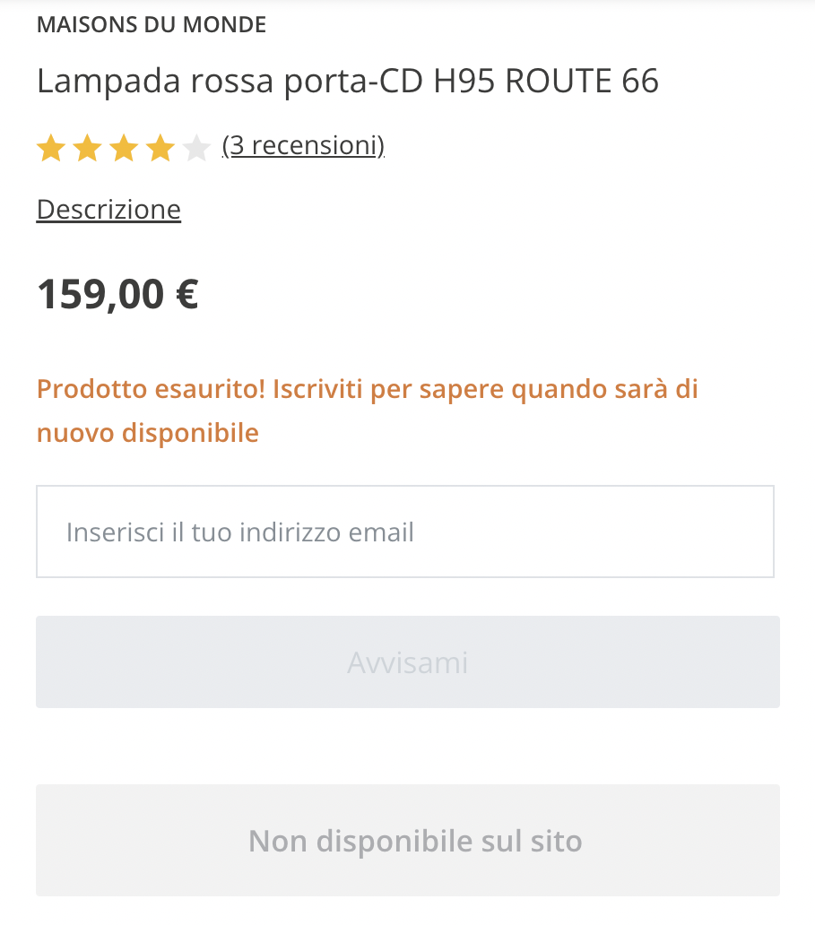 La CTA sarà, chiaramente, “Avvisami quando il prodotto torna disponibile”.