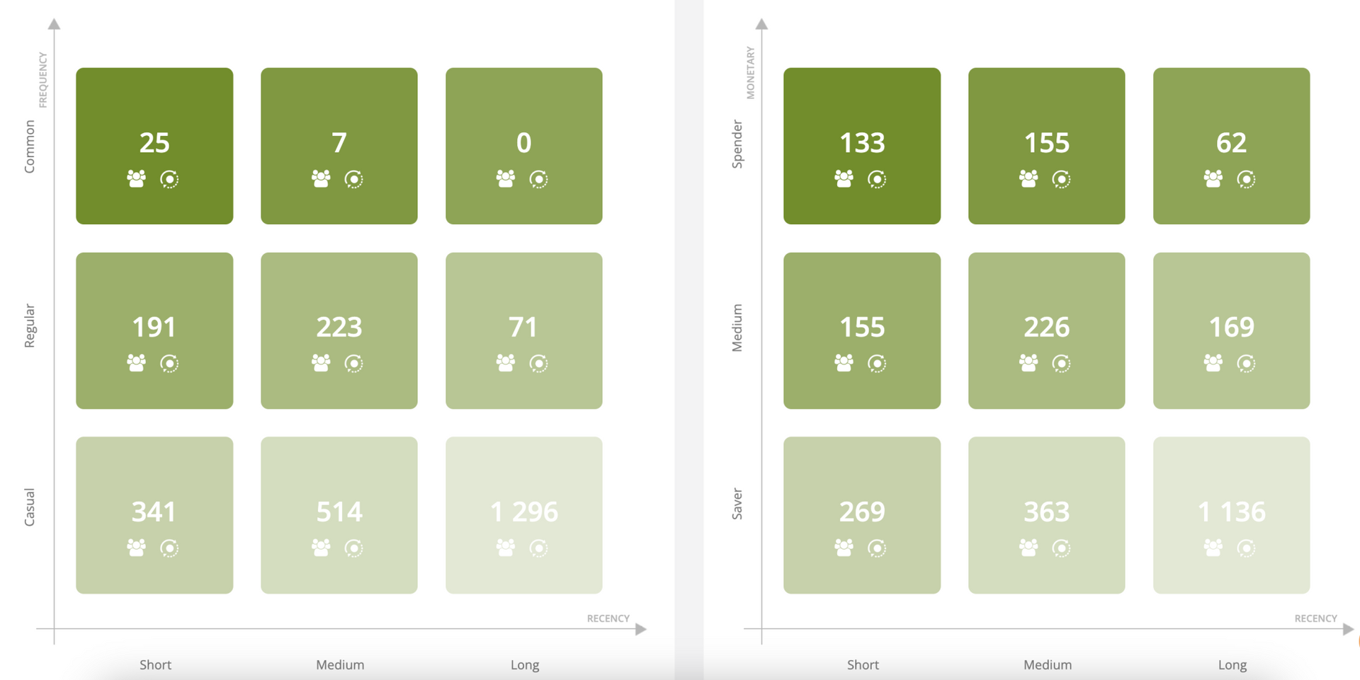 The simplest way to manage these dynamics is to adopt a dynamic RFM segmentation, defining different ranges for the 3 metrics Recency, Frequency, and Monetary.