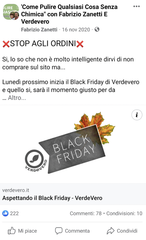Questa “premura” può essere utilizzata con successo anche in una community esclusiva, come in questo esempio di Verdevero.